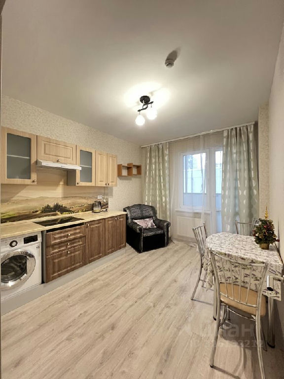 Общая S = 40кв.м.+ застекленная лоджия, просторная кухня 12,5 кв.м., комната 18 кв.м. с удобной гардеробной, окна во двор.